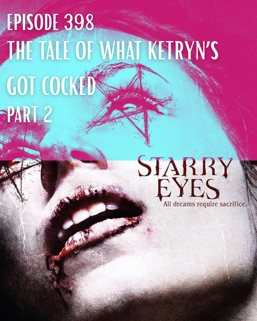 Kim continues telling Ket about Starry Eyes. It’s full of triggering stuff, guys, not the least of which is a harkening back to Kim’s days imprisoned in her own Big Taters. But whatever horrors this movie brings up, it doesn’t compare to the horrors of today’s world. So, let’s pop some acid with Ketryn and see what sticks, shall we? Most importantly, we’ll learn if Ket will live or die in Starry Eyes.